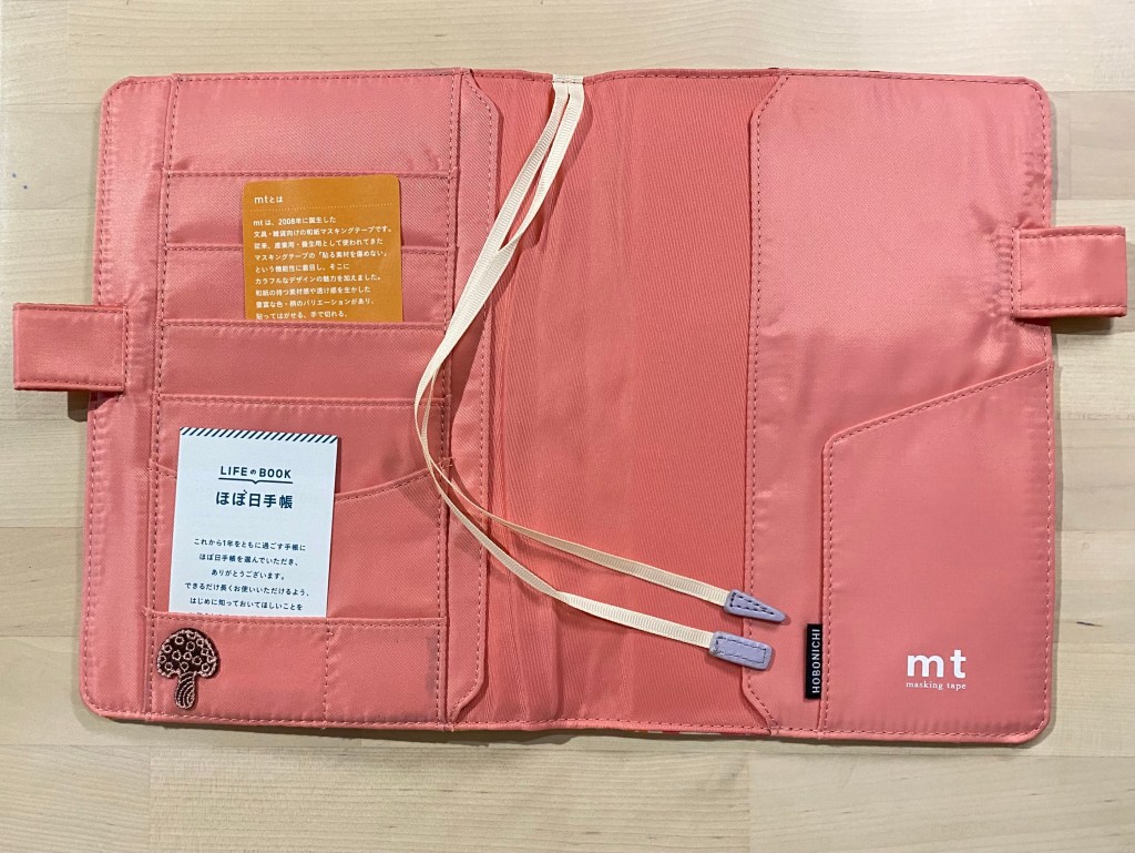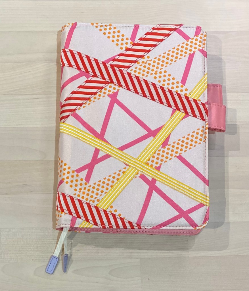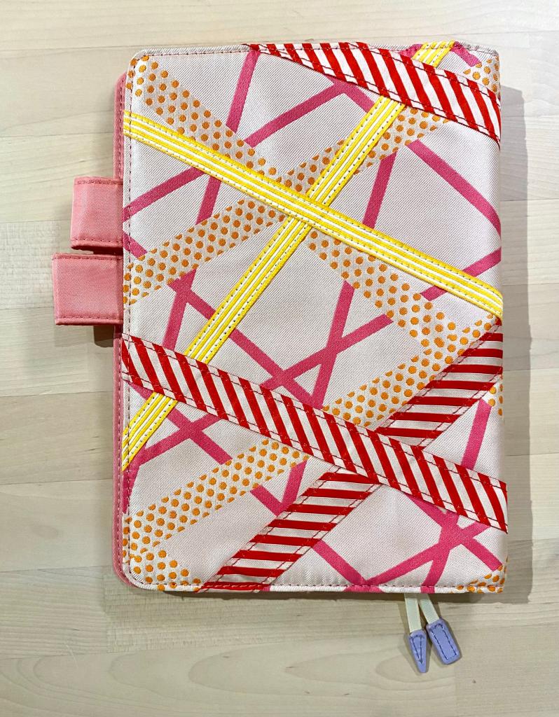 This is a preloved Hobonichi cover featuring the collaboration between Hobonichi and MT tape company, with ribbons which looked like MT tapes being sewn on the cover, giving both visual and tactile interests to the journal cover. This cover was first launched by Hobonichi for year 2020, and is no longer in production. You can find more description about this cover here.